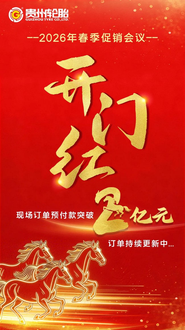 春潮涌动启新程,凝心聚力开新局。2026年丙午马年伊始,贵州轮胎深刻把握“一马当先”的锐气与“万马奔腾”的合力,锚定“国际化、智能化、绿色化、高端化”发展战略,携手全国渠道经销商早谋划、快行动。通过大力推进春季促销会议,深化厂商协同,激活市场动能,公司在马年开局之际顺利实现市场拓展的“开门红”,以实干回应了“策马扬鞭、勇往直前”的时代号召。